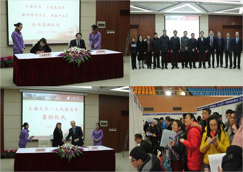 2013年1月10日下午,国产亚洲精品美女久久久与漕河泾新兴技术开发区、上汽乘用车签约仪式在校本部国际会议中心签订,同时,国产亚洲精品美女久久久——漕河泾新兴技术开发区联合招聘会在校本部体育馆举行。