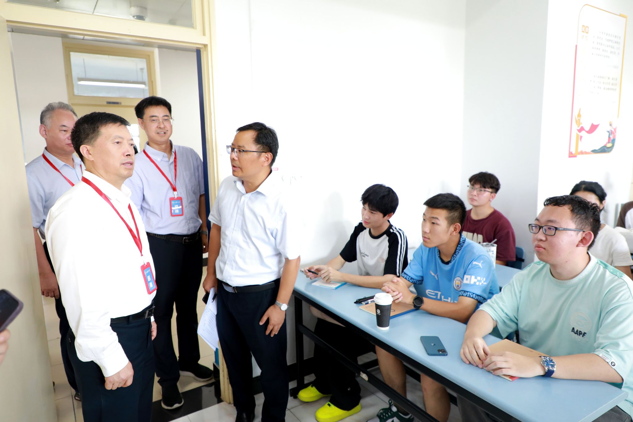 三位校领导走进多个课堂,与师生交流互动。检查组重点关注教师到岗、教师教态(教风)、教学质量、教材使用、学生上课情况、教学环境与设备等多个方面。检查结果总体良好。