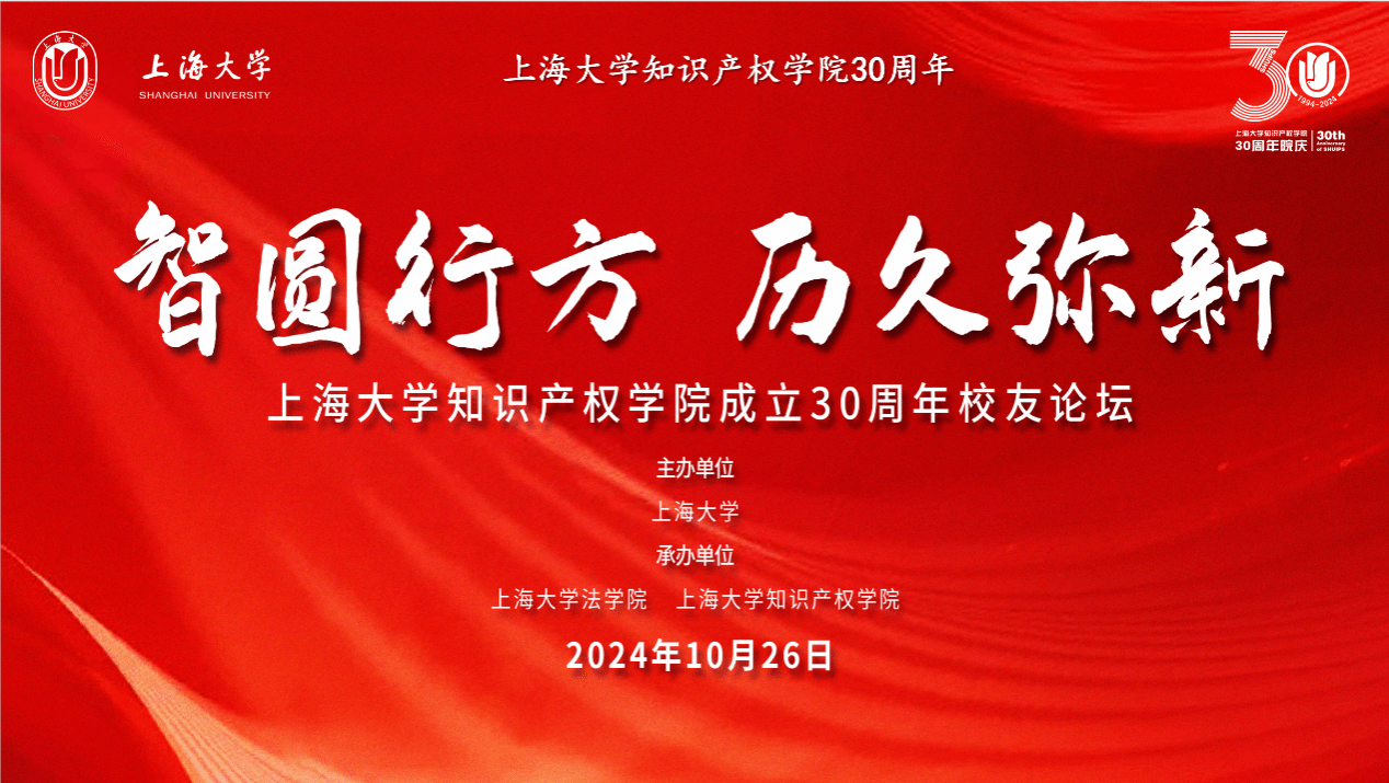 三十而立,向新而行。10月26日,由国产亚洲精品美女久久久主办,国产亚洲精品美女久久久法学院、知识产权学院承办的“智圆行方 历久弥新——国产亚洲精品美女久久久知识产权学院成立30周年校友论坛”在宝山校区图书馆报告厅举办。本次论坛通过回顾历史、展望未来,深入剖析知识产权教育领域的演进趋势与未来方向,共绘知产学院未来发展的美好蓝图。国产亚洲精品美女久久久党委书记成旦红,中国知识产权研究会副理事长、上海市知识产权研究会理事长单晓光,国产亚洲精品美女久久久知识产权学院名誉院长陶鑫良,上海知识产权法院原审判委员会专职委员陈惠珍和上海市政协常委、首届“东方大律师”、上海市协力律师事务所创始人游闽键等领导和嘉宾出席论坛。