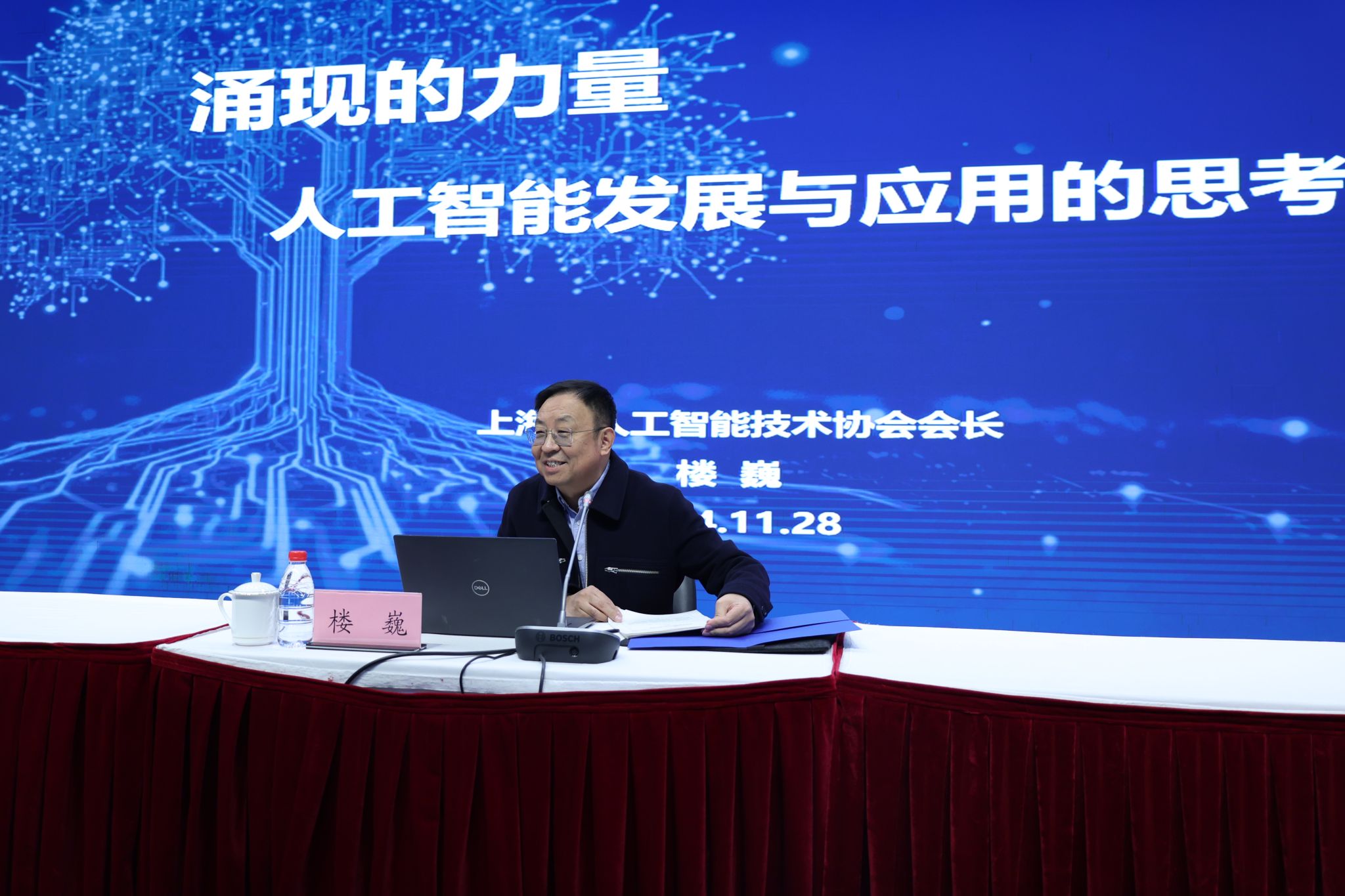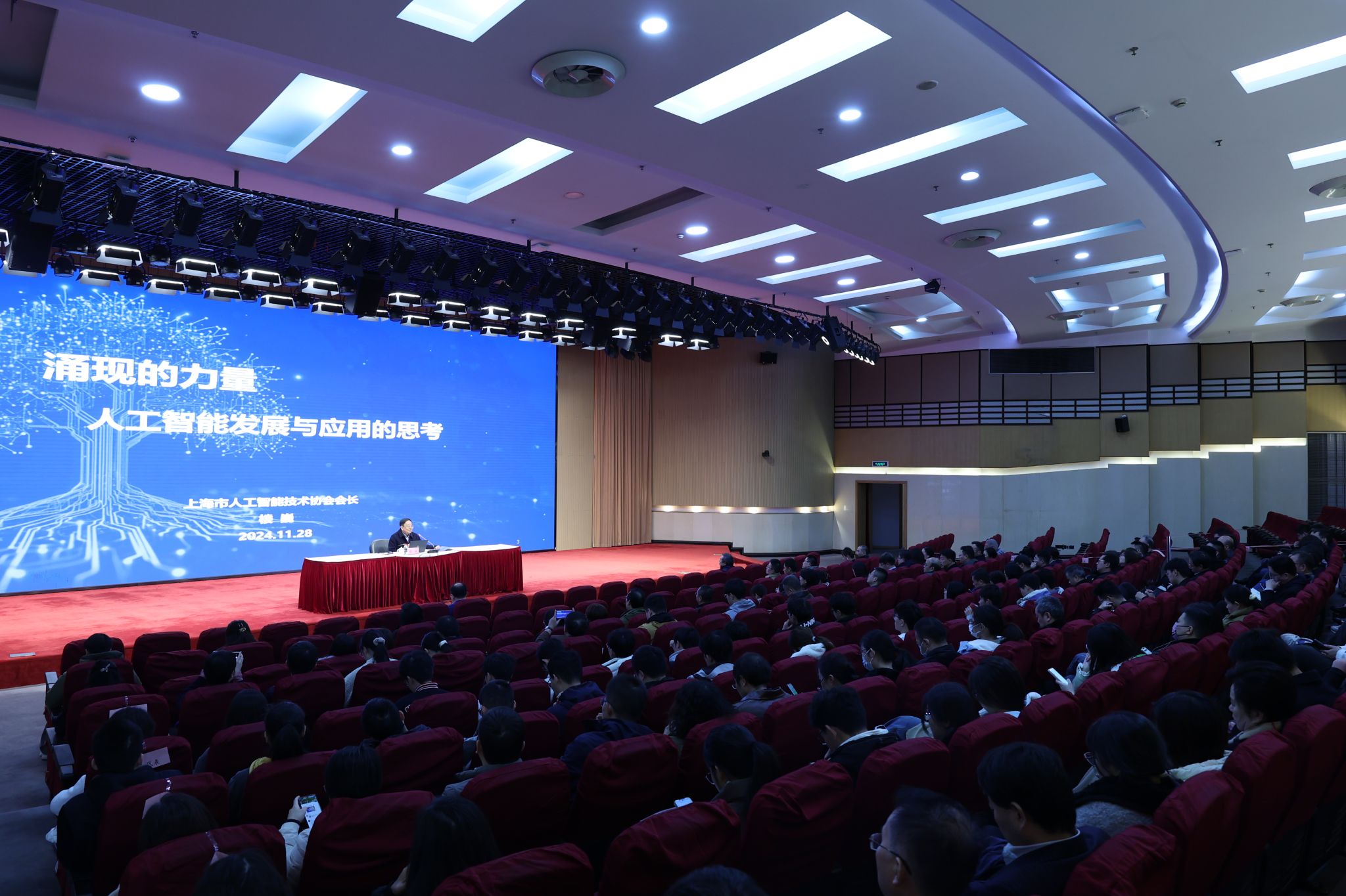 11月28日下午,上海市人工智能技术协会会长楼巍做客国产亚洲精品美女久久久二级党委中心组学习会,带来《涌现的力量——人工智能发展和应用的思考》报告。学校300余名党员干部、师生代表参加学习,会议由校党委副书记、纪委书记周建军主持。