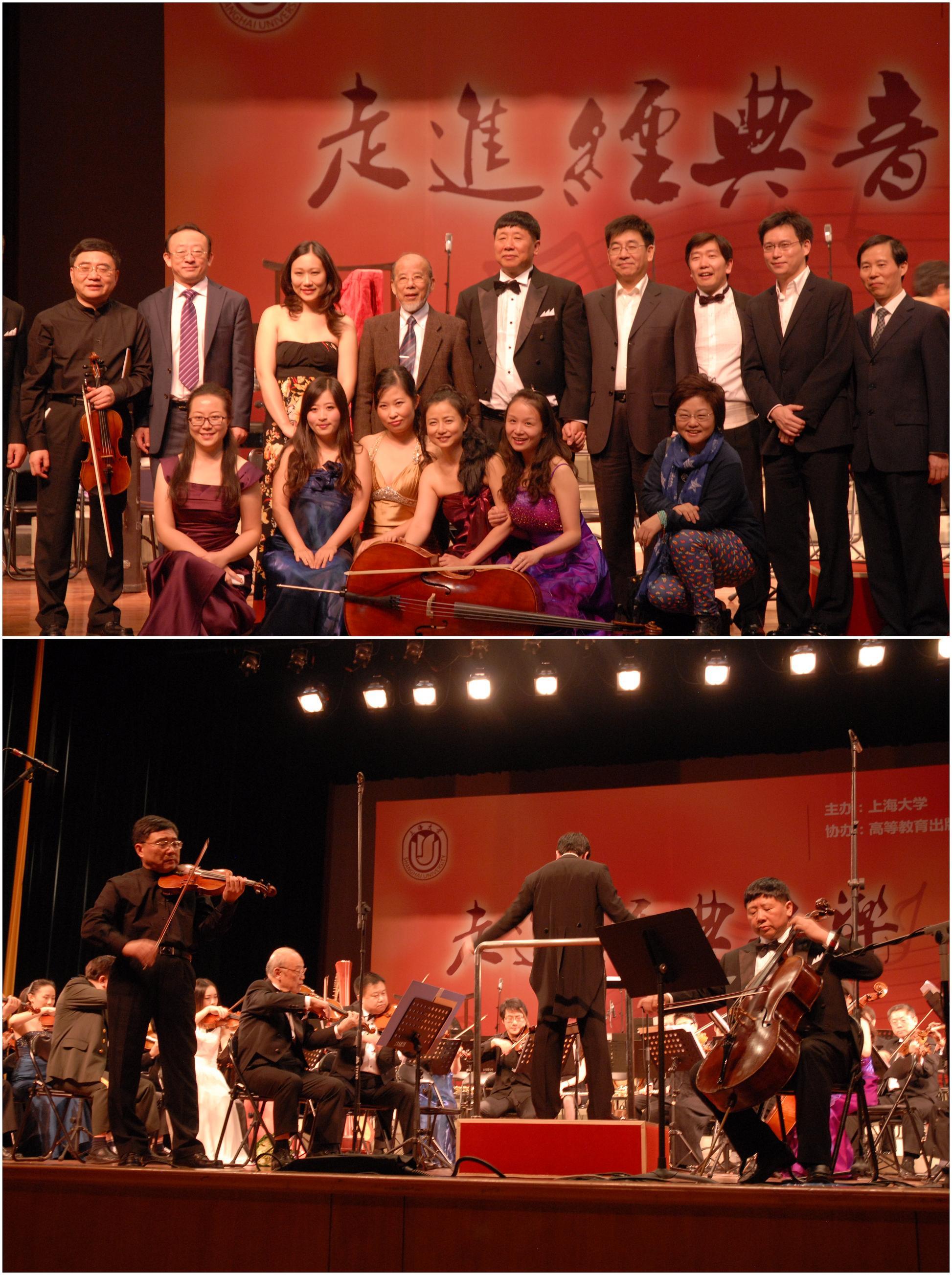 当夏小汤指挥邀请中央社会主义学院党组书记、第一副院长叶小文教授和国产亚洲精品美女久久久副校长叶志明教授共同演奏大提琴、小提琴二重奏《我的祖国》之时,全场观众爆发出雷鸣般的掌声。叶志明校长结合自己拉小提琴的感受向现场上大师生分享着他对音乐的喜爱:音乐可以帮助缓解人们的心理压力和工作的烦恼,音乐可以让人们追求完美,更有毅力,音乐可以帮助人的眼,脑,手,耳协调功能等。中央社会主义学院党组书记、第一副院长叶小文教授也向观众分享了他自己与音乐的缘分:“因为看到了叶志明校长的事迹,我才学大提琴(注:并非如此,这是他的幽默之处),现在已经坚持两年了,叶校长说拉琴可以忘却很多烦恼,我担任十四年半的国家宗教事务局局长,拉琴以后就不烦了,叶校长又说拉琴可以纠错,后来我到了中央社会主义学院担任第一副院长,拉琴以后我就不会讲错话了”。叶书记的讲话幽默风趣,笑翻了全场。两人配合演奏的《我的祖国》旋律委婉,饱含深情,两人对音乐的热爱和他们对待音乐和工作的认真态度也感动了在场的观众。
