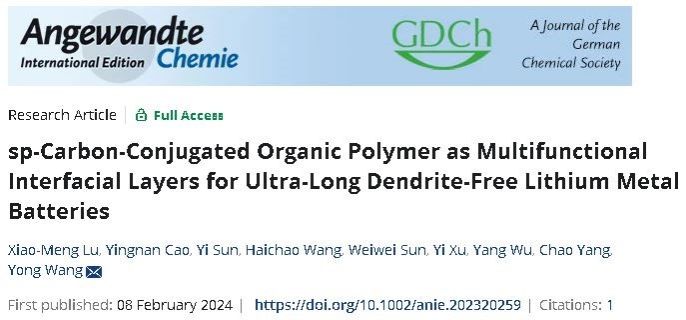 近日,环化学院博士研究生路晓萌连续在国际知名期刊《Angewandte Chemie International Edition》上发表了题目分别为“sp-Carbon-Conjugated Organic Polymer as Multifunctional Interfacial Layers for Ultra-Long Dendrite-Free Lithium Metal Batteries”和“Covalent Triazine Based Frameworks with Donor-Donor-π-Acceptor Structures for Dendrite-Free Lithium Metal Batteries”2篇锂金属电池领域的最新研究成果,两项研究工作均以国产亚洲精品美女久久久为唯一完成单位,指导教师为王勇教授。