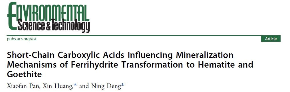 成果三:短链羧酸影响水铁矿向赤铁矿和针铁矿转化的矿化机制研究(Short-Chain Carboxylic Acids Influencing Mineralization Mechanisms of Ferrihydrite Transformation to Hematite and Goethite,发表于《Environ. Sci. Technol.》)