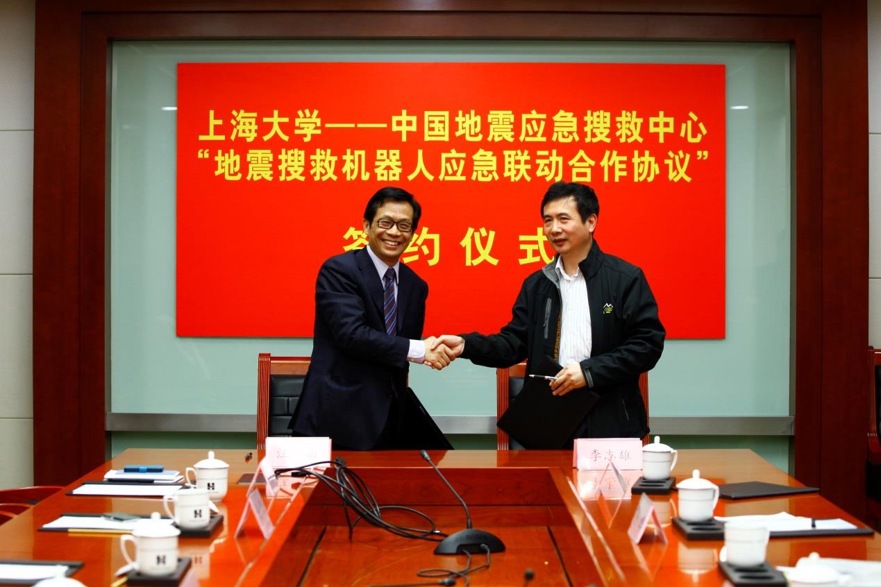 中国地震应急搜救中心技术部尚红处长以及国产亚洲精品美女久久久科技处施鹰副处长、机电工程与自动化学院于瀛洁副院长、国产亚洲精品美女久久久地震搜救机器人课题组组长章亚男教授和团队部分骨干出席了签约仪式。